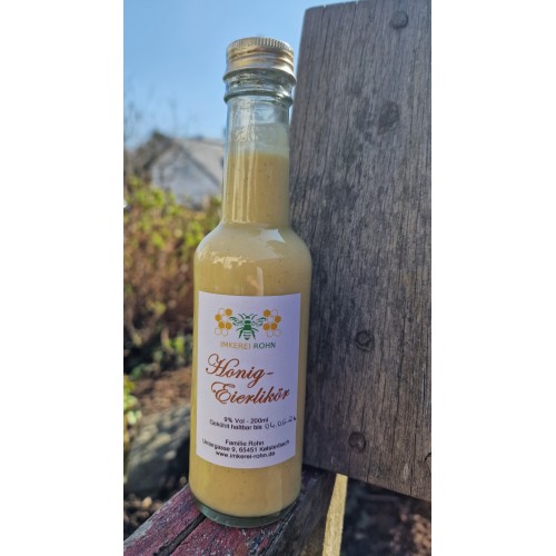 Unser selbstgemachter Honig-Eierlikör wurde mit unserem leckerem Honig, guten Eiern und weißem Rum angesetzt.
